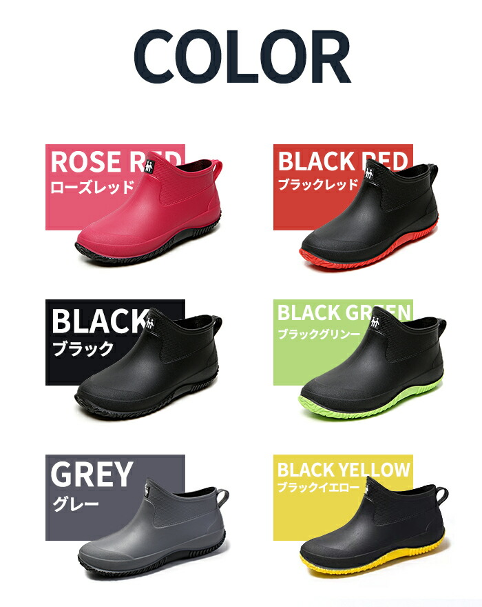 レインブーツ ゴム ショット ブーツ 靴 大人気! ブラック ブラックレッド ローズレッド ブラックグリンー グレー ブラックイエロー 22.5cm 23cm 23.5cm 24cm 24.5cm 25cm 25.5cm 26cm 26.5cm 27cm