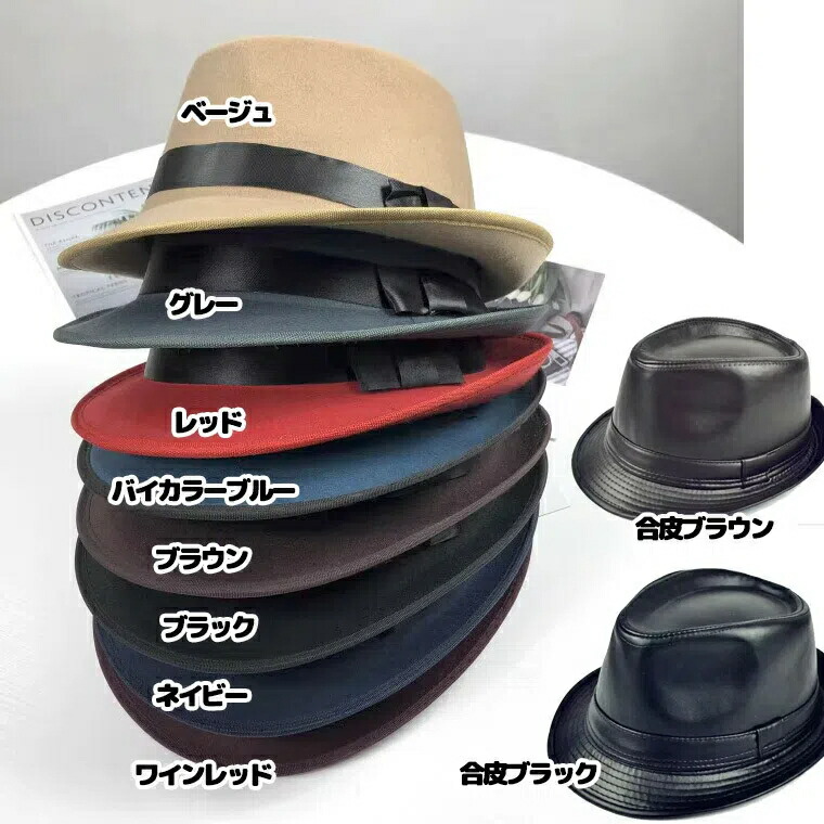 紳士ハット 紳士帽 フェイクレザー 合 帽子 メンズ帽子 ハット 続々入荷中 ブラック ネイビー ワインレッド ベージュ グレー レッド バイカラーブルー ブラウン 合皮ブラック 合皮ブラウン