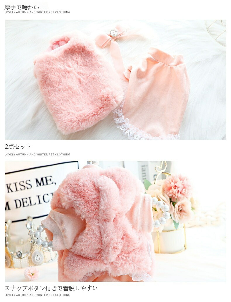 犬服 秋冬 可愛い 犬洋服 ドックウェア コートふわふわ 柔らかい おしゃれ 暖かい ファッション ペットウェア 防寒 保温 お散歩 ピンク ホワイト 小中型犬