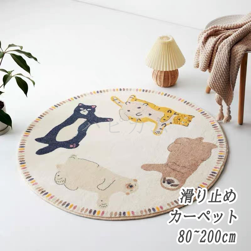 ラグ ラグマット ライオン子供用 円形 丸 カーペット 洗える rug センターラグ ウォッシャブル 玄関マット ベッドサイド アクセント 円型 ホットカーペット おしゃれ じゅうた 床暖房