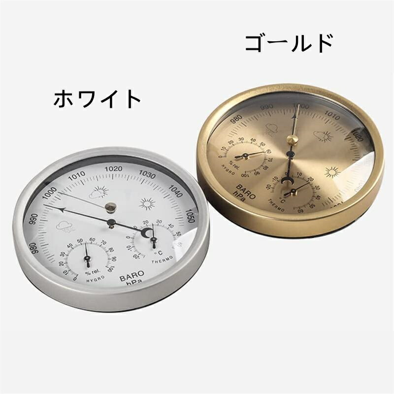 気圧計 湿度計 温度計 アナログ おし ホワイト ゴールド