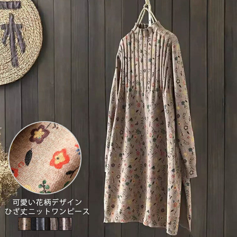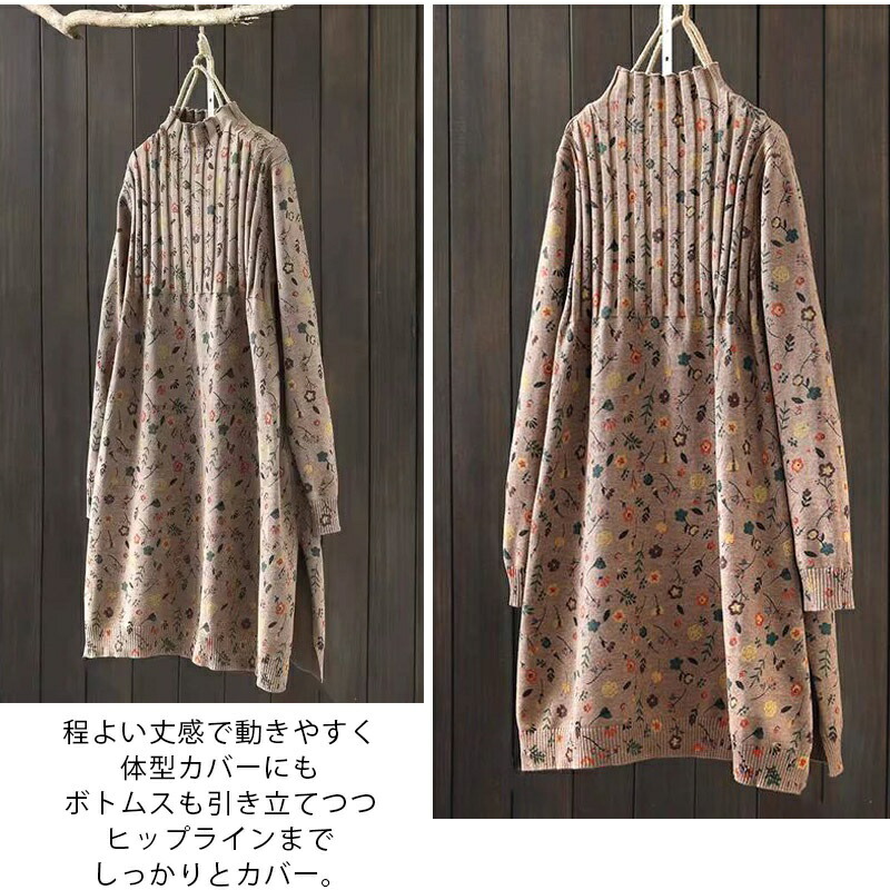ワンピース チュニックワンピース ニッ チュニック 続々入荷中 ベージュ グレー コーヒー色