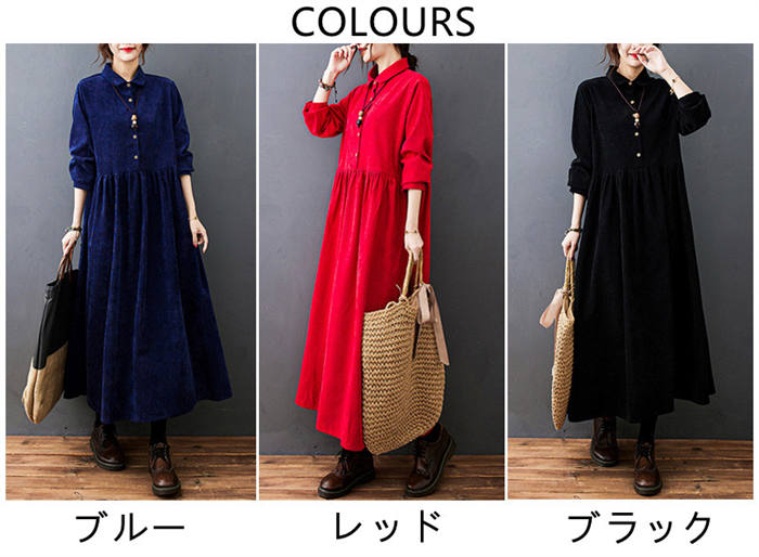 ワンピース シャツワンピ ロング丈 コ ワンピース 超目玉商品 ブラック レッド ブルー M L XL 2XL