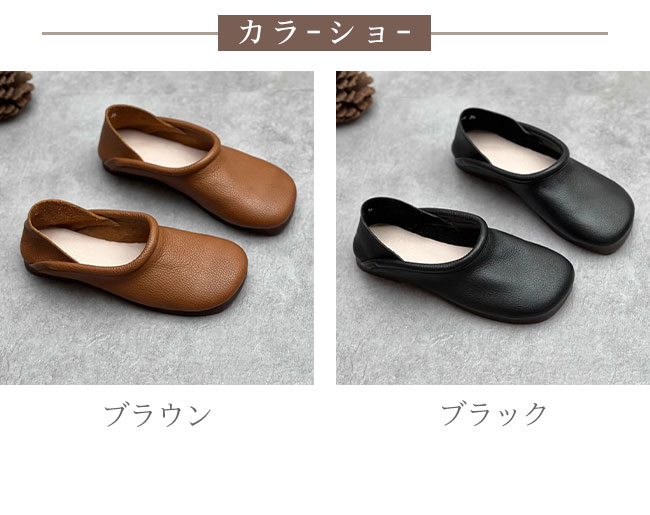 フラットシューズ 牛革 スリッポン ス 靴 続々登場 ブラウン ブラック 35 36 37 38 39 40