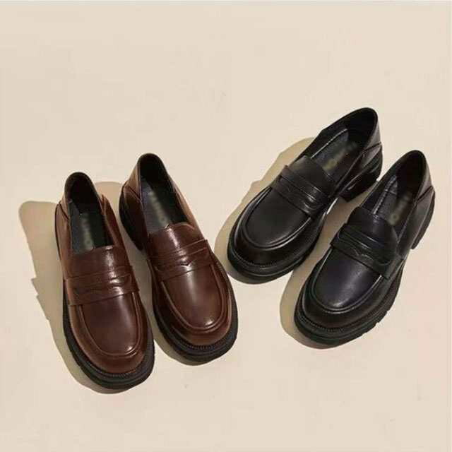 ローファー 靴 学生 ヒール レディー レディース靴 ローファー 早い者勝ち ブラック ブラウン 35 36 37 38 39 40