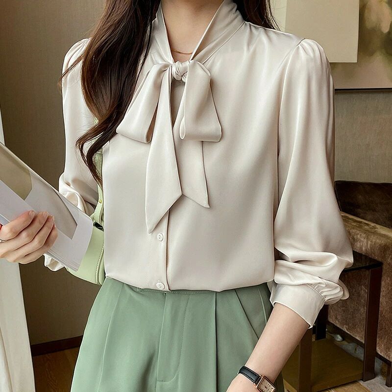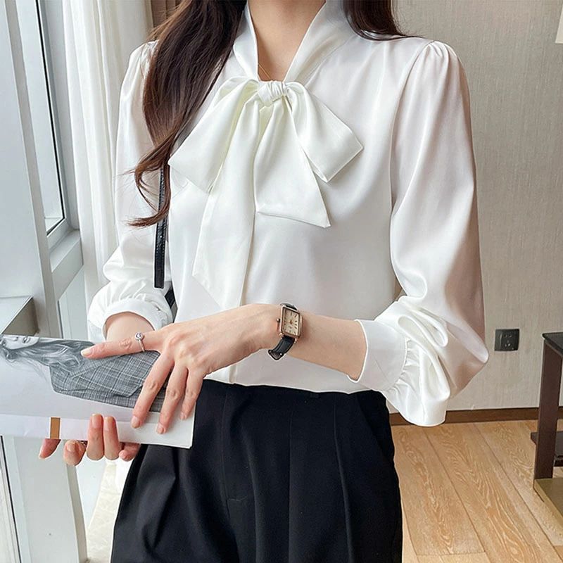 シアースリーブ ドッキングシャツ ボウタイシャツブラウス