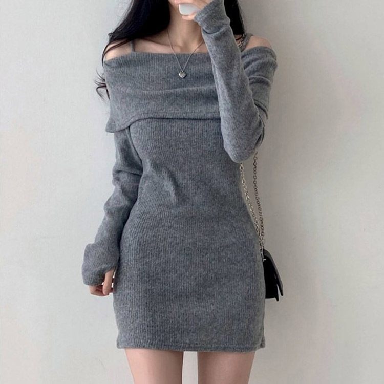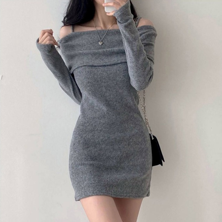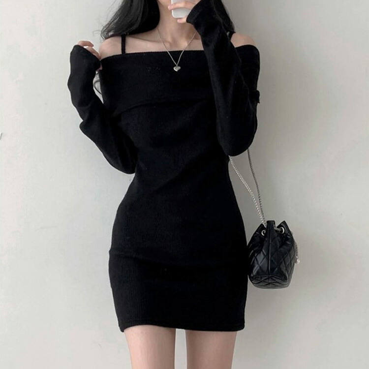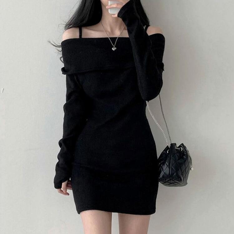 オフショルダー ニットワンピース タイ レディースファッション 超目玉商品 ブラック グレー S M L XL 2XL