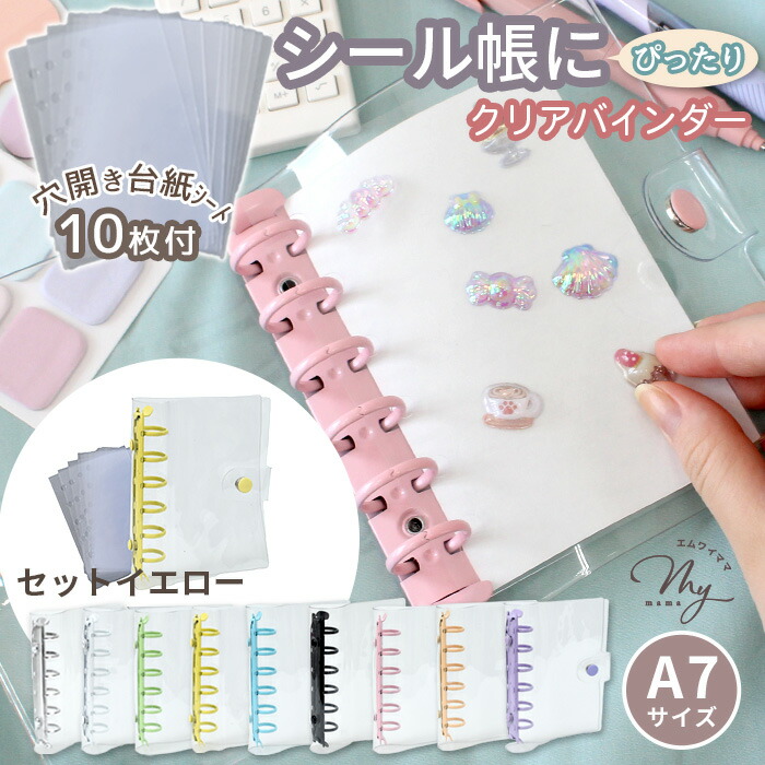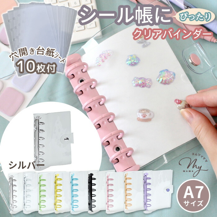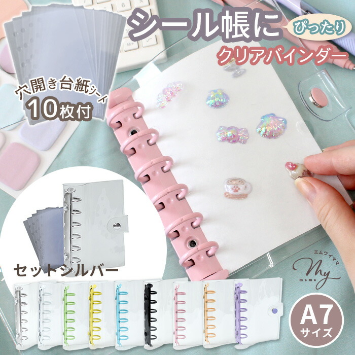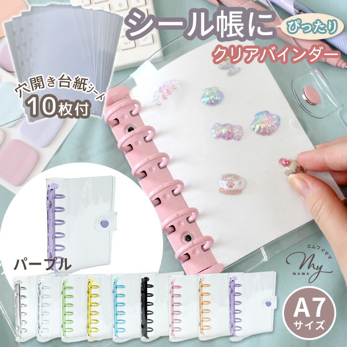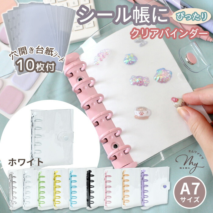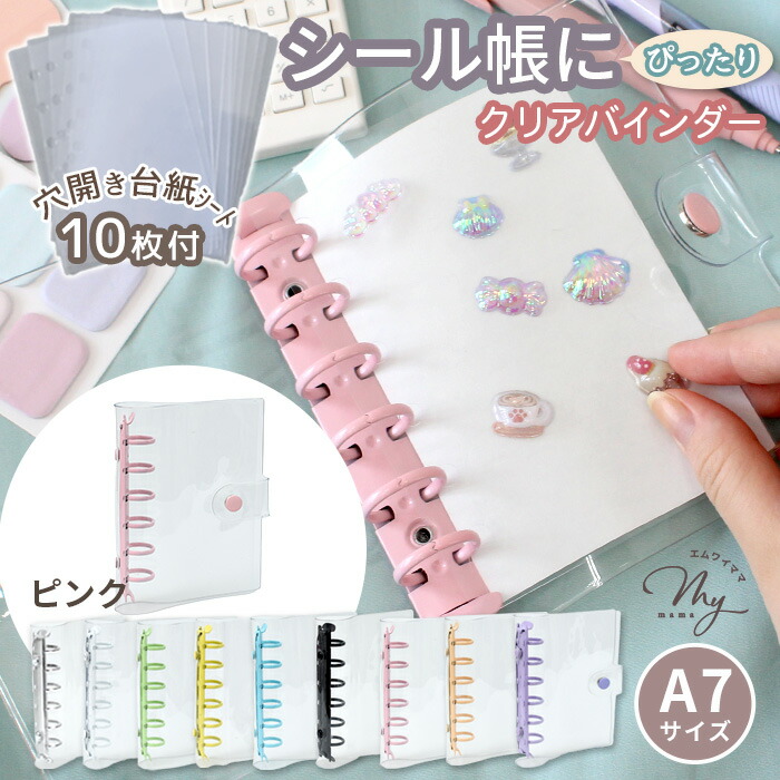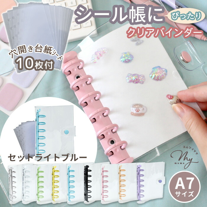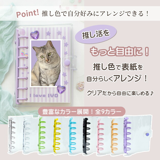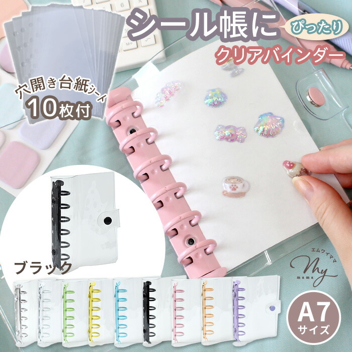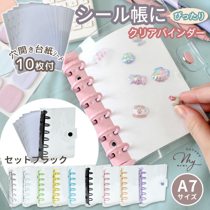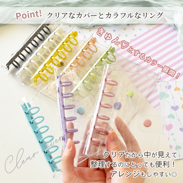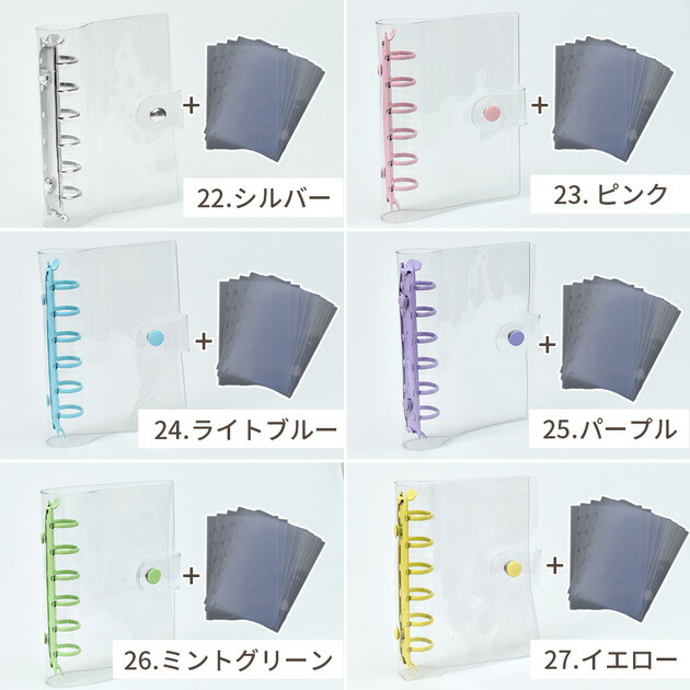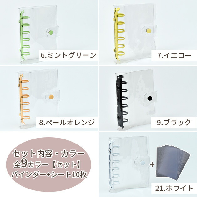 クリア カラフル バインダー 全9色 文房具 事務用品 手帳 ノート 手帳 超目玉商品 単品(バインダーのみ) セット(バインダー+シート10枚) ホワイト シルバー ピンク ライトブルー パープル ミントグリーン イエロー ペールオレンジ ブラック
