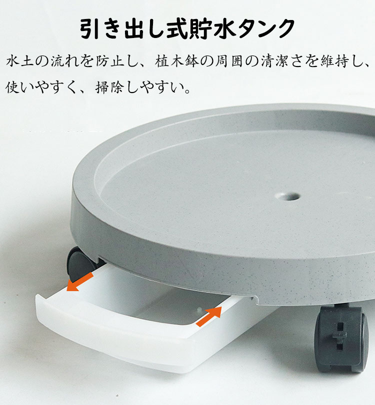 植木鉢台 貯水付き移動花台 鉢受台 鉢置き台 フラワースタンド 鉢置台 キャスター 受け皿付き 360°回転のキャスター ロック可能 ストッパー付き 移動便利 観葉植物 置き台 貯水機能 組立簡単 台