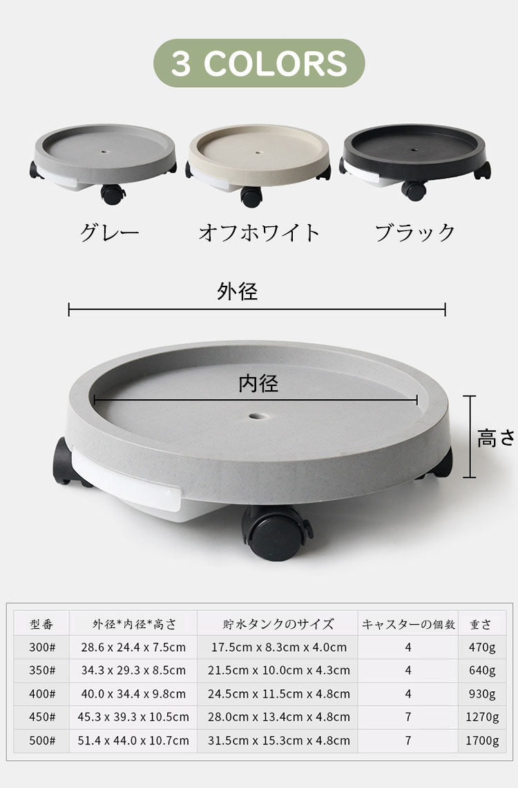 植木鉢台 貯水付き移動花台 鉢受台 鉢 グレー オフホワイト ブラック 300#(内径24.4cm) 350#(内径29.3cm) 400#(内径34.4cm) 450#(内径39.3cm) 500#(内径44cm)