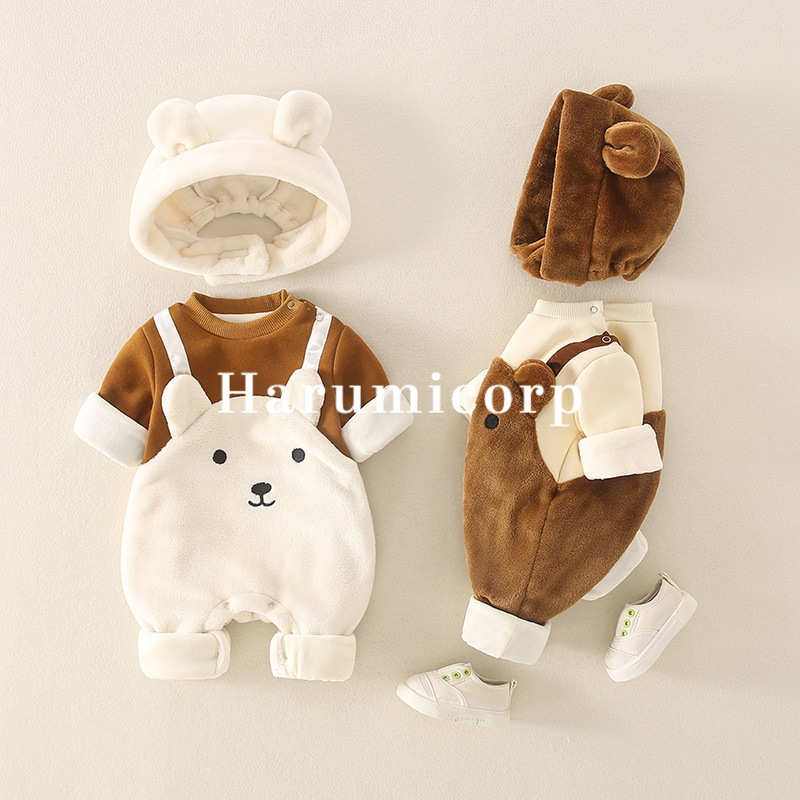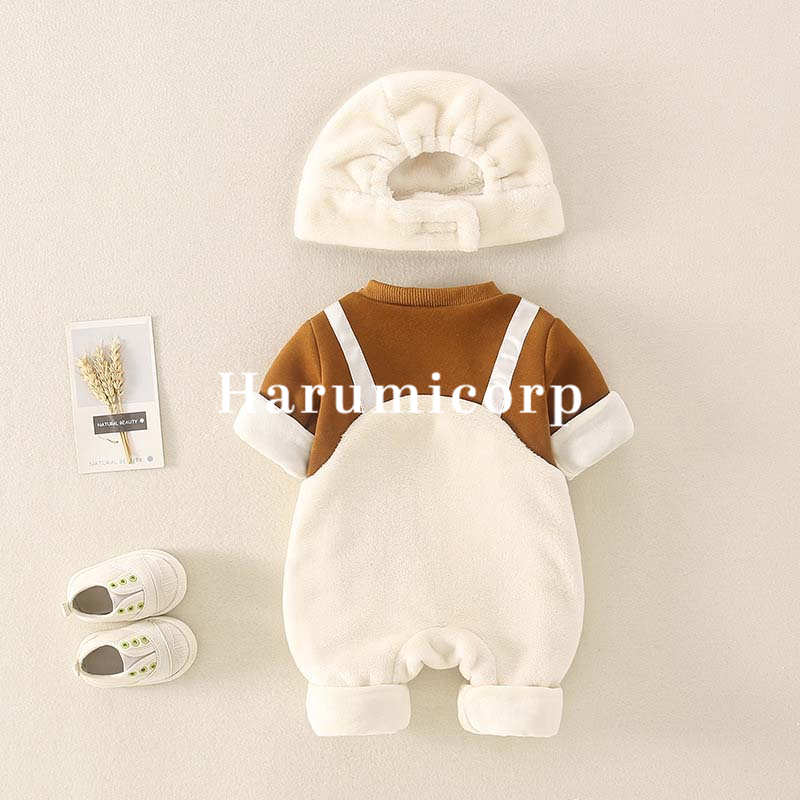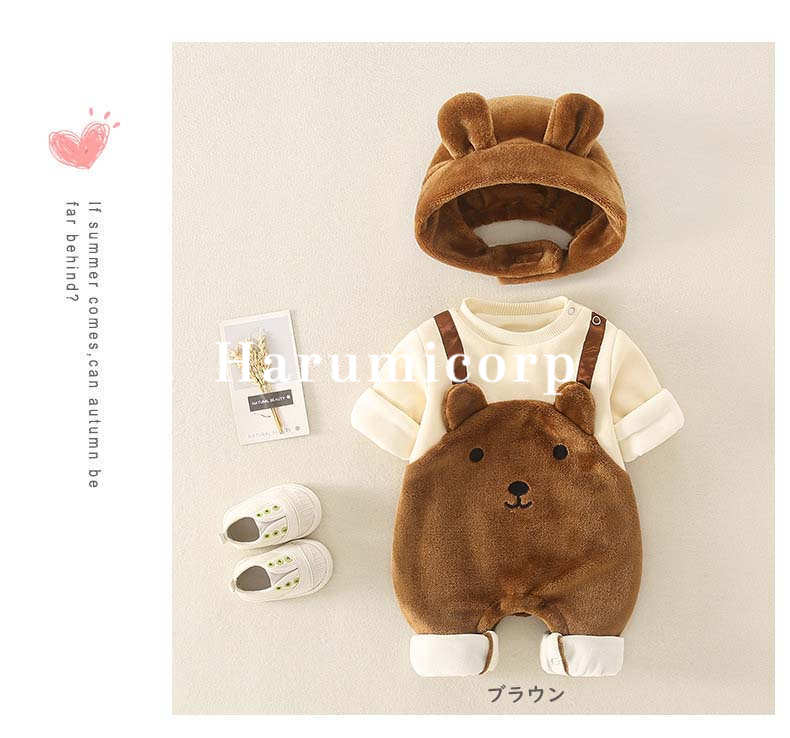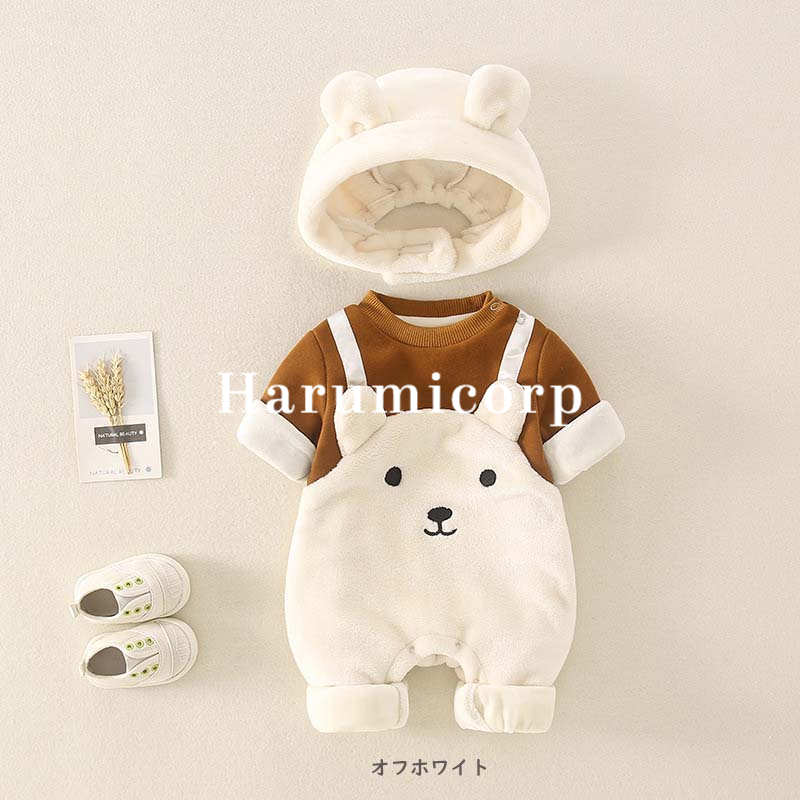 ロンパース 帽子付き 秋冬 ベビー服 ベビー ベビー服 ファッション カバーオール ロンパース 人気 ブラウン オフホワイト 66cm 73cm 80cm 90cm