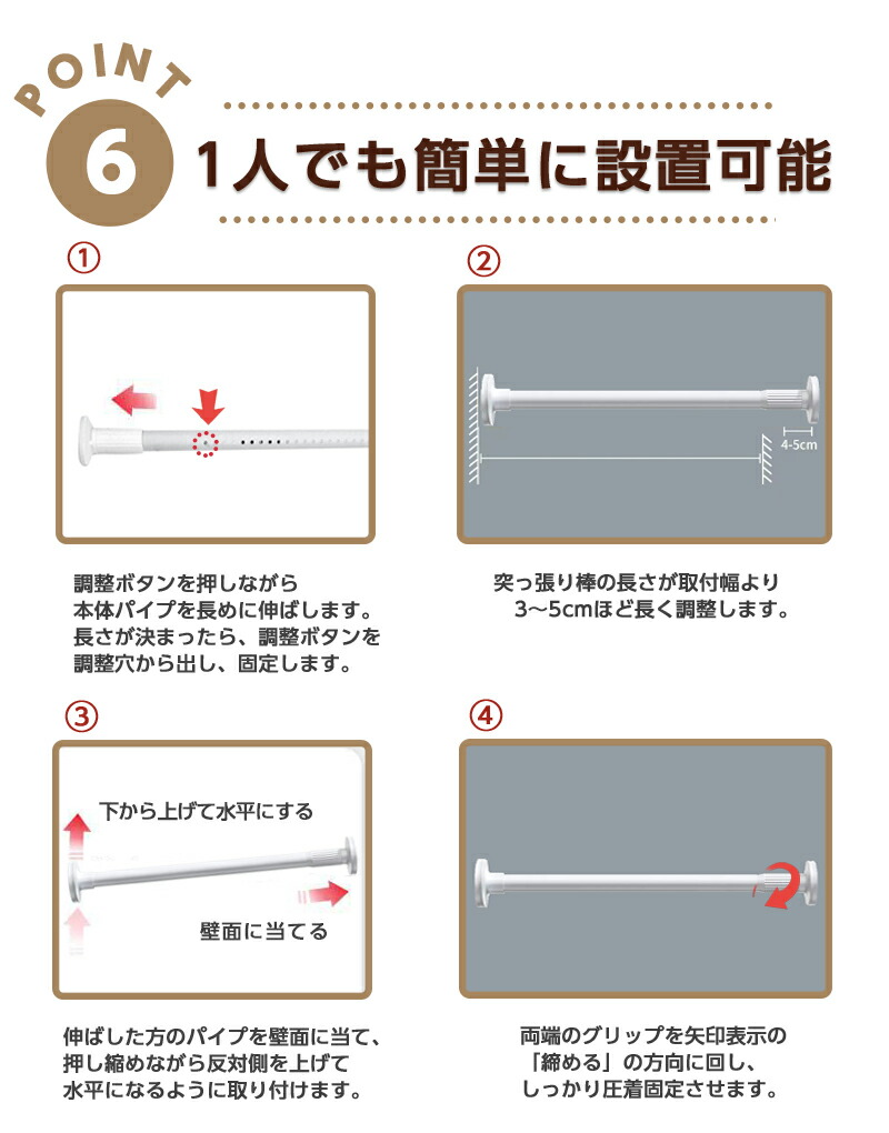突っ張り棒 強力 長い 4m ツッパリ ホワイト ブラック 92-127cm 128-177cm 178-227cm 228-277cm 278-327cm 328-377cm 378-430cm