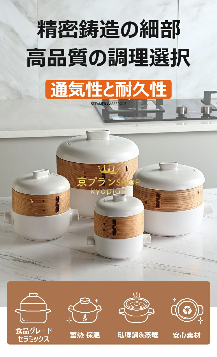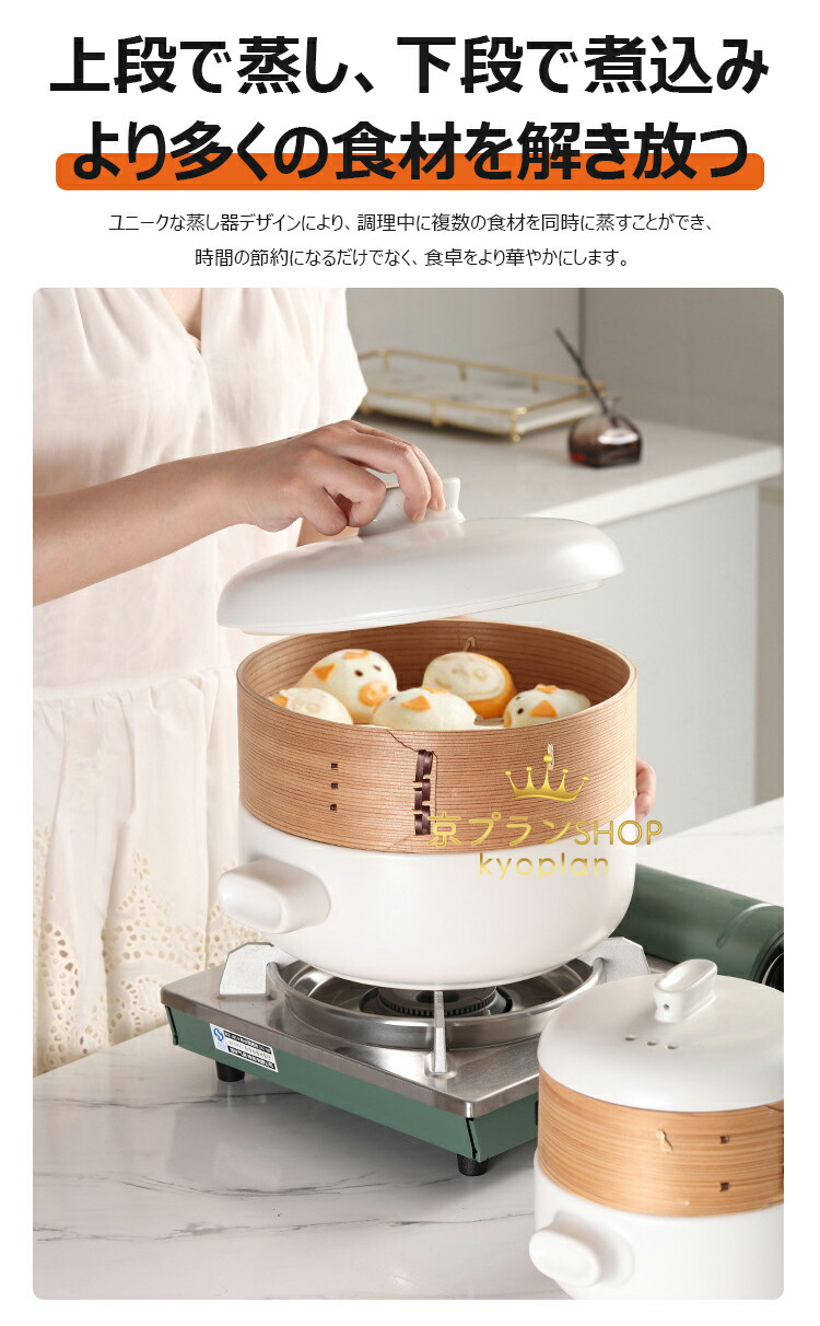 【上段で蒸し、下段で煮込み、より多くの食材を解き放つ】 ユニークな蒸し器デザインにより、調理中に複数の食材を同時に蒸すことができ、時間の節約になるだけでなく、食卓をより華やかにします。 お粥でも、スープでも、肉まんでも、煮込み料理でも、このキャセロールなら簡単にこなせます。