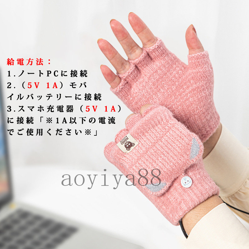 手袋 女性 USB加熱 ヒーター 発熱 バッグ 小物 ブランド雑貨 通販 ピンク ブラック グレー ブルー ベージュ