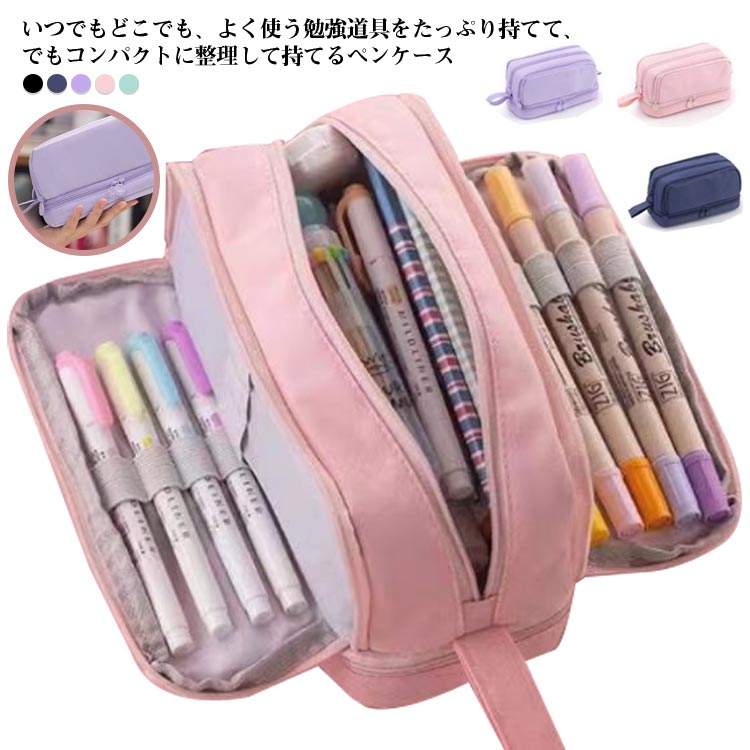 人気 筆箱 大容量 中学生 おしゃれ 文房具 事務用品 筆記具 ペンケース 通販 パープル ピンク グリーン ブラック ネイビー