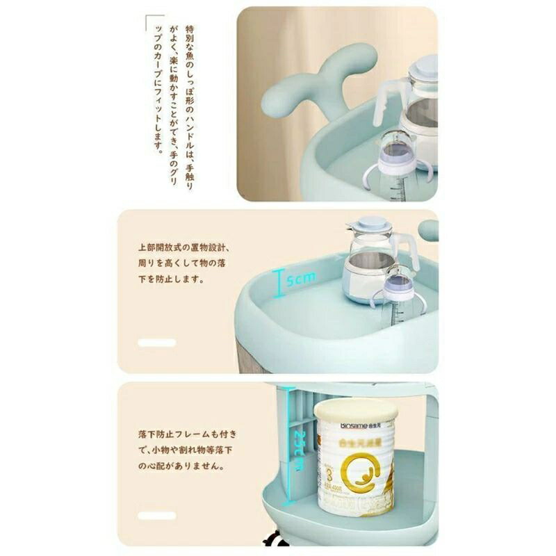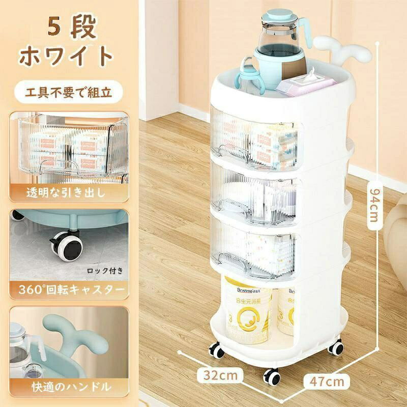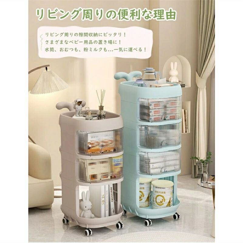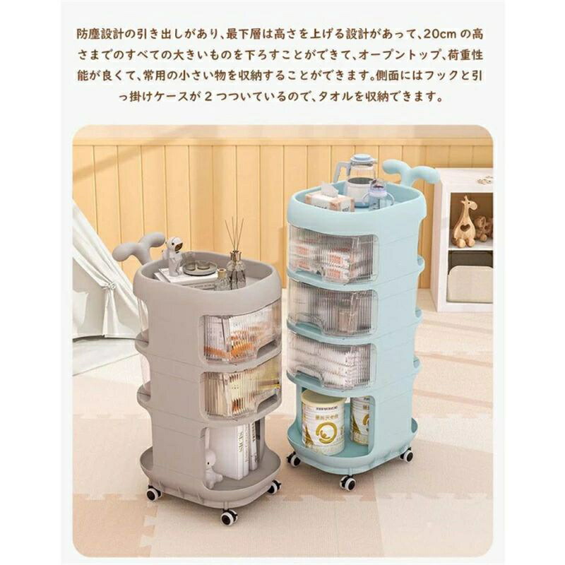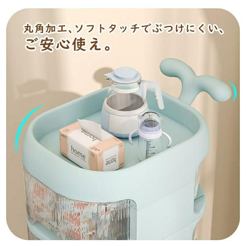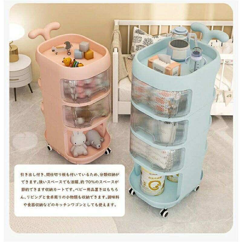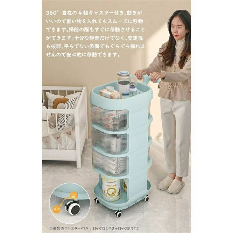 ベビーワゴン キャスター付き 4段 ベビー用品 収納ワゴン 引き出し 取っ手付き 赤ちゃん オムツ収納 多機能 移動便利 かわいい 大容量 収納カート