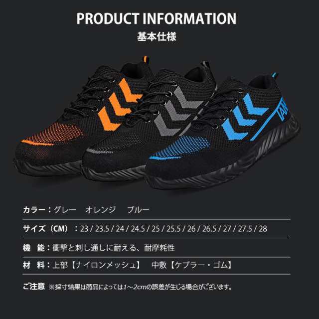 安全靴 ワークブーツ 作業靴 滑らない ブラック ブルー オレンジ 23.0cm(36) 23.5cm(37) 24.0cm(38) 24.5cm(39) 25.0cm(40) 25.5cm(41) 26.0cm(42) 26.5cm(43) 27.0cm(44) 27.5cm(45) 28cm(46)