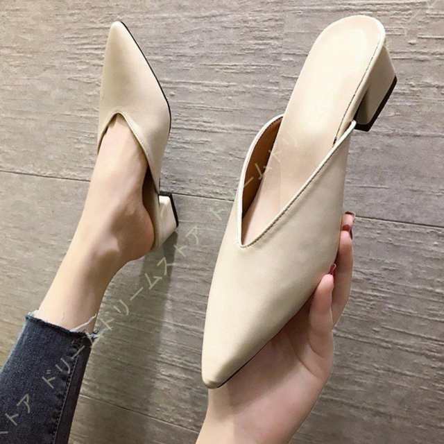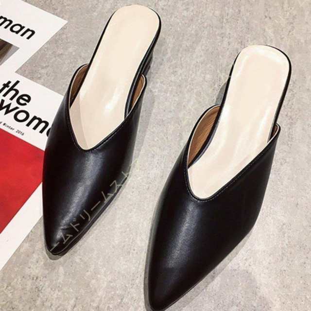 ミュール サンダル ポインテッドトゥ 靴 新登場! ブラック アプリコット ベージュ 22.5cm 23.0cm 23.5cm 24.0cm 24.5cm 25.0cm