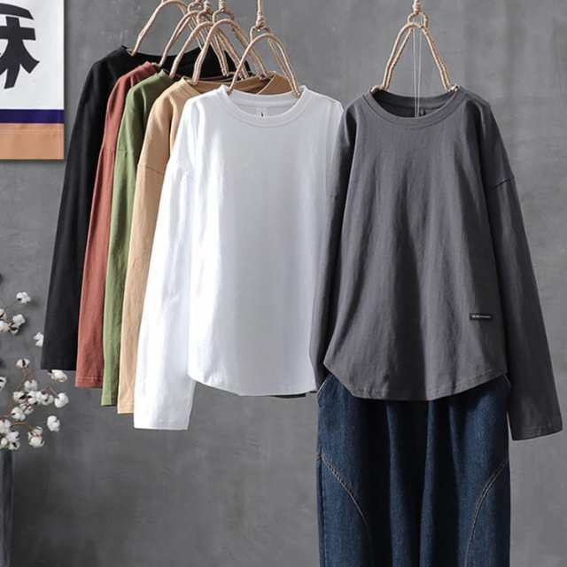 大きいサイズ 重ね着 長袖 Tシャツ レディースファッション 人気 M L XL 2XL 3XL 4XL グレー グリーン イエロー コーヒー ブラック ホワイト