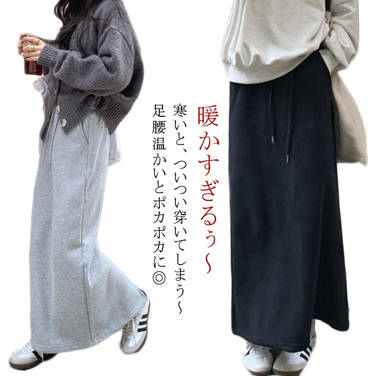 ロングスカート 体型カバー ポケット ボトムス スカート 特集 裏起毛ブラック 裏起毛グレー M L XL