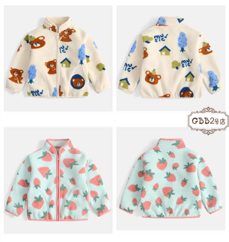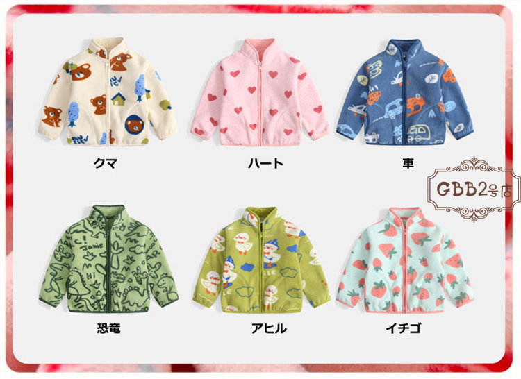 ボアコート キッズ 裏起毛 ベビー服 キッズ コート ジャケット 続々登場 ブルー グリーン ピンク パープル クマ ハート 車 恐竜 アヒル イチゴ 90cm 100cm 110cm 120cm 130cm 140cm