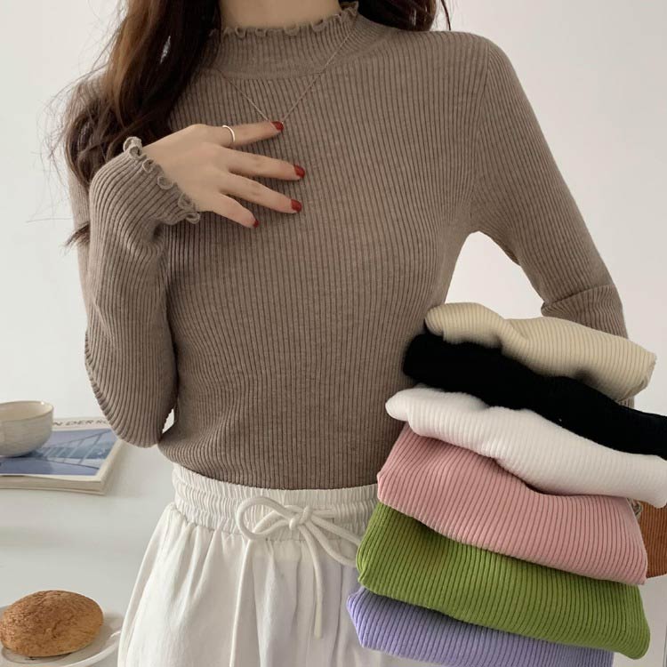 トップス ニット ハイネック フリル トップス ニット セーター セーター 早い者勝ち ホワイト コーヒー パープル グリーン ブラック ピンク ベージュ