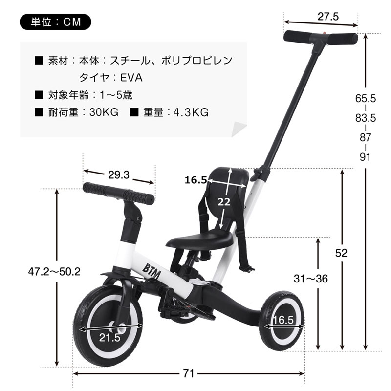押し棒を外して通常の三輪車として、お使いいただけます。