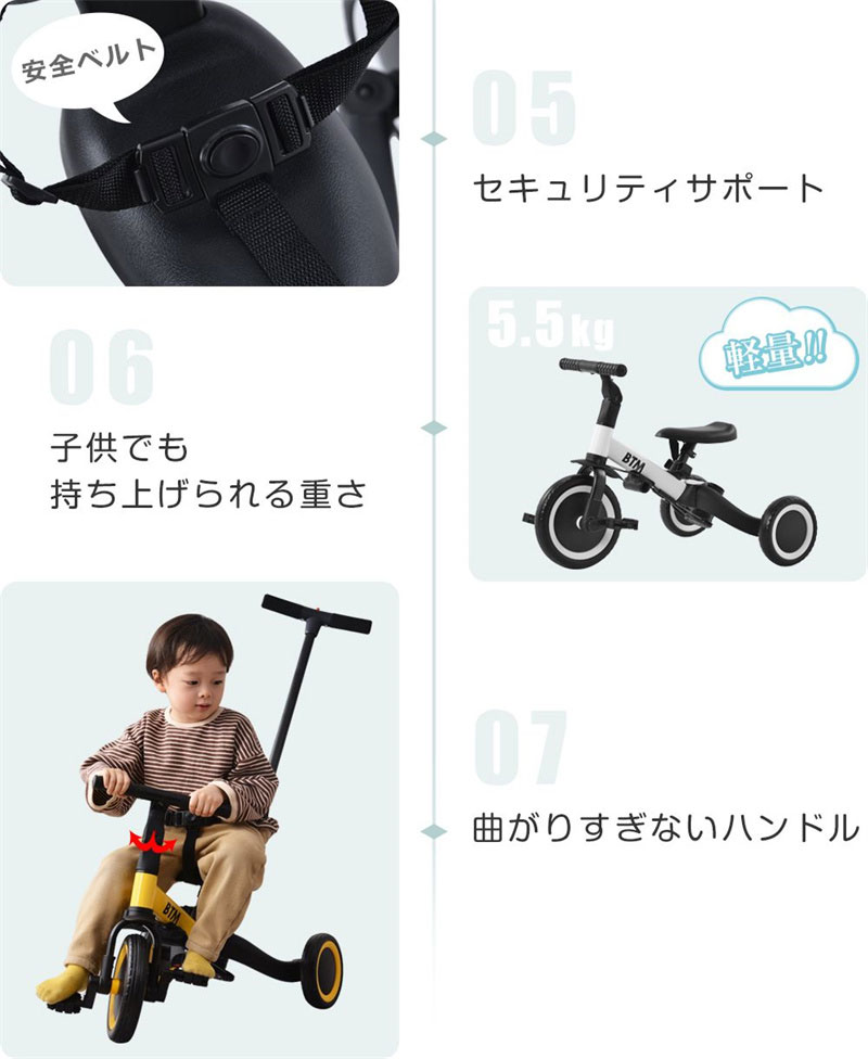 子供用三輪車 5in1 4WAY 押し棒付き ランニングバイク 1歳 2歳 3歳 4歳 5歳 自転車 おもちゃ 乗用玩具 幼児用 軽量 可愛い キッズバイク こどもの日 クリスマス プレゼン お誕生日