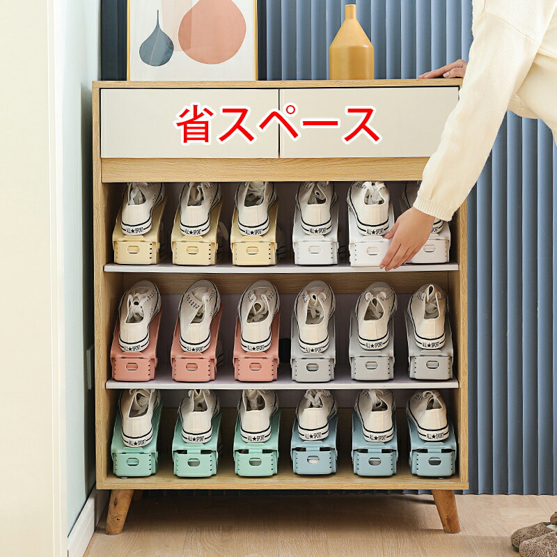 省スペース 靴スタンド 男女兼用 靴 6個セット 12個セット ホワイト イエロー グリーン ブルー ブラック ピンク グレー