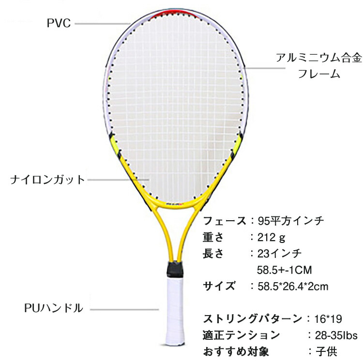 キッズ用テニスラケット 23インチ 硬 スポーツ アウトドア 人気 ピンク ブルー 黄色