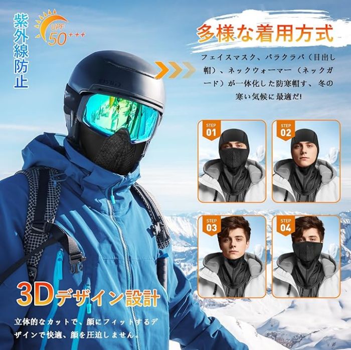 バラクラバ 冬用 ネックウォーマー フ ブラック ダークグレー