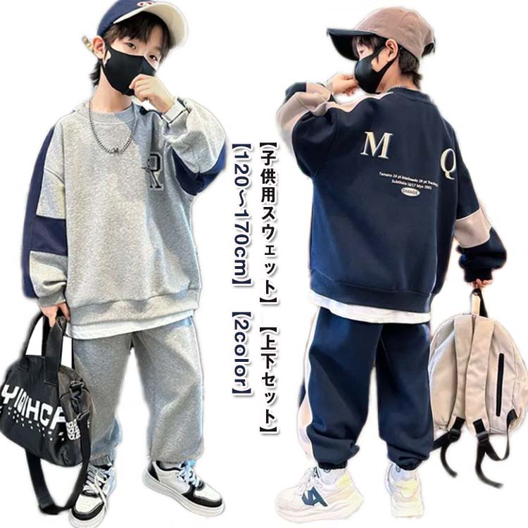 長ズボン 上下セット セットアップ 1 キッズ スーツ カジュアルセットアップ カジュアルパンツセット 新登場! ネイビー グレー 120 130 140 150 160 170