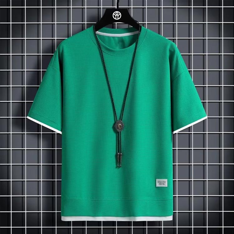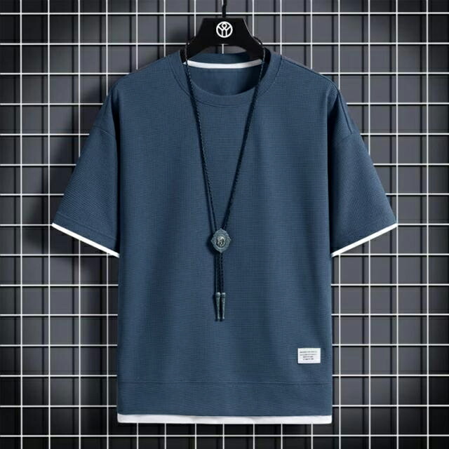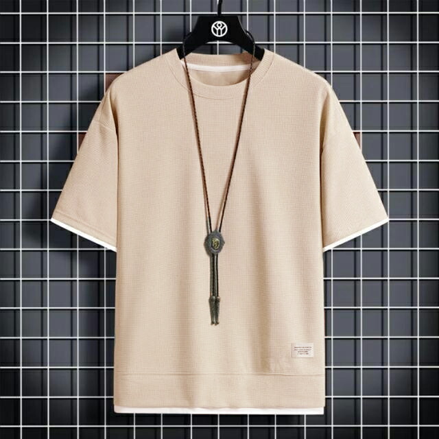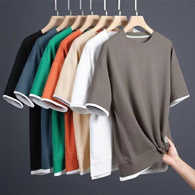 ワッフル 薄手 半袖 通気性 カジュア トップス Tシャツ カットソー 通販 ブラック ホワイト ネイビー グレー ベージュ オレンジ グリーン M L XL 2XL 3XL