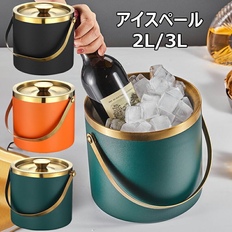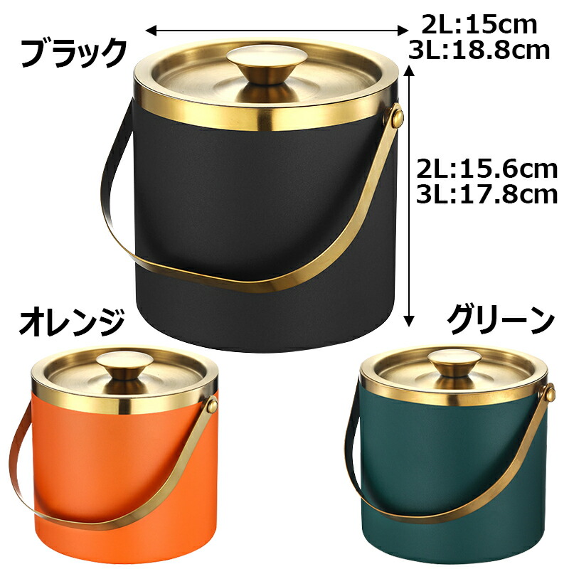 アイスペール 二重構造 ステンレス製 ワイン バー 酒用品 アイスペール 豊富な品揃え ブラック オレンジ グリーン 2L(15x15.6cm) 3L(18.8x17.8cm)
