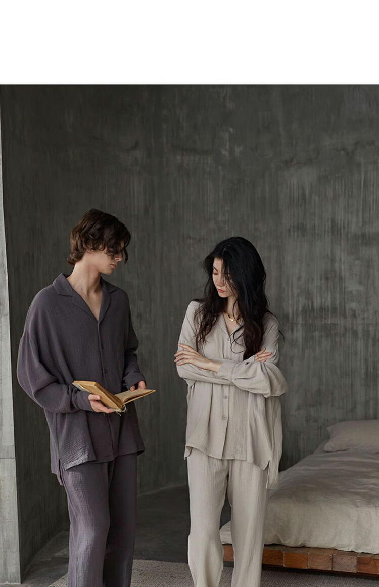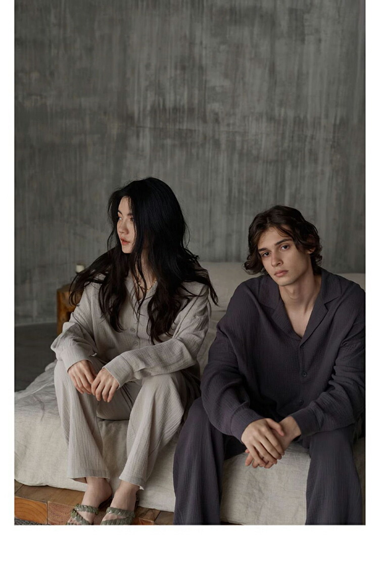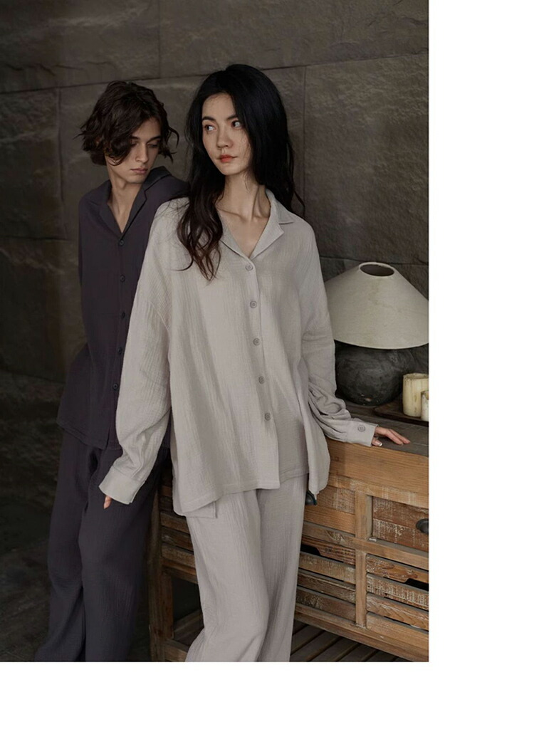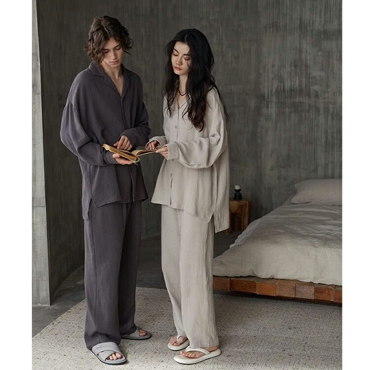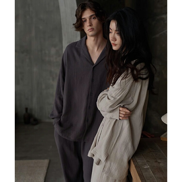 ペア パジャマ 綿100% 前開き 無 女 男 M L XL 2XL 3XL