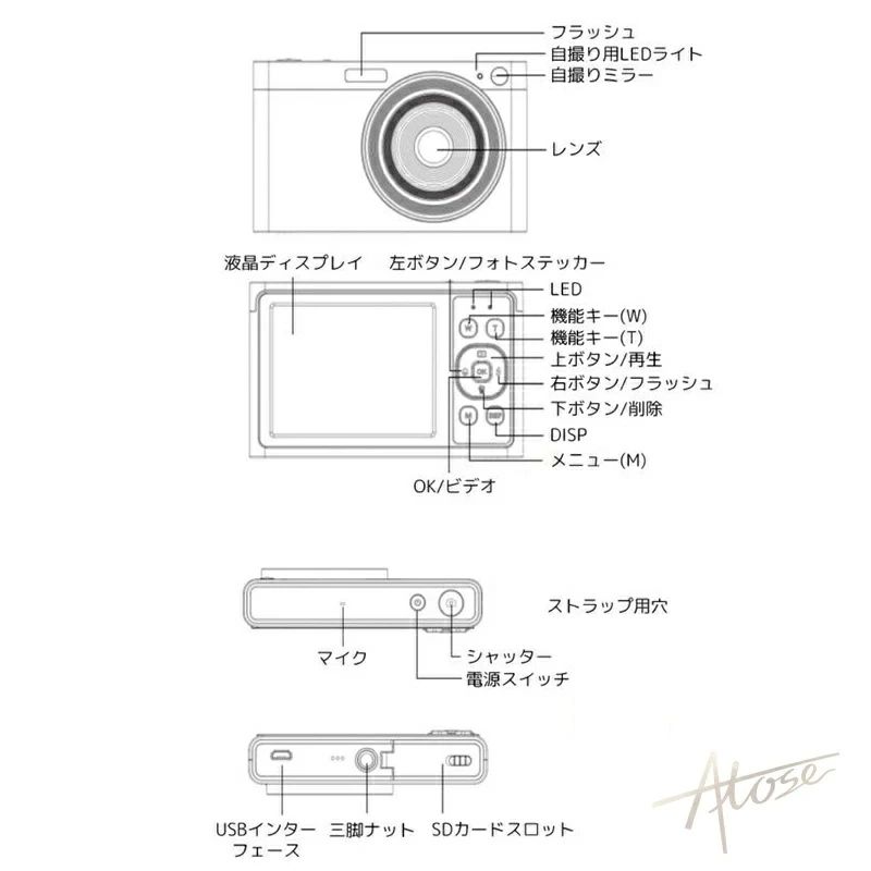ポータブル オートフォーカス 手ぶれ補 ピンク ブラック ホワイト ブルー