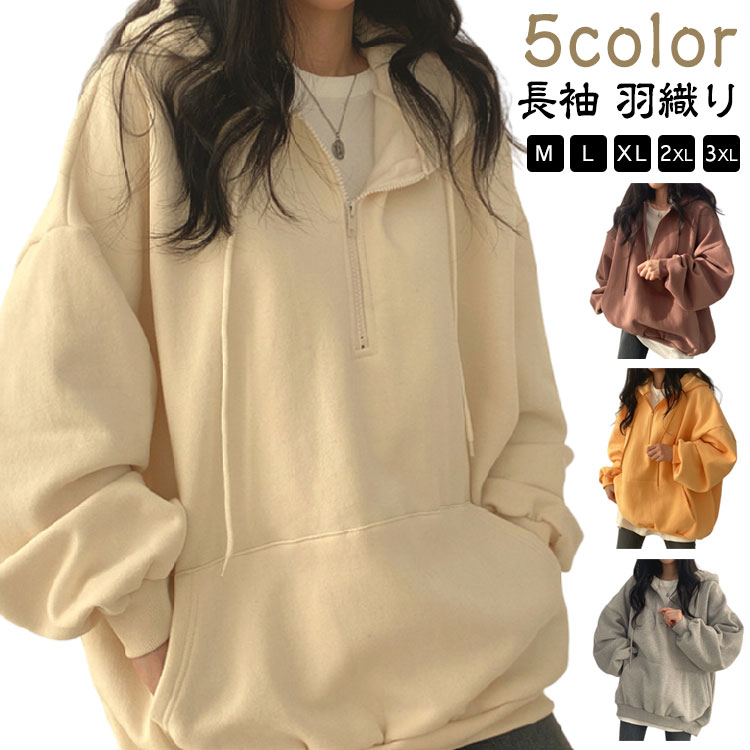パーカー ハーフジップ トップス オー レディースファッション 続々入荷中 ブラック グレー イエロー ブラウン ベージュ M L XL 2XL 3XL