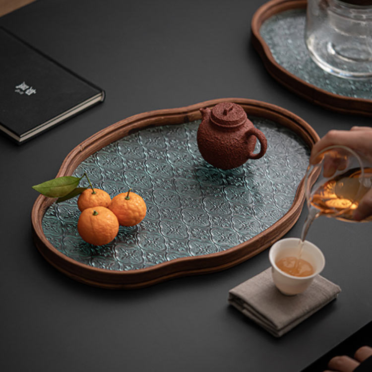 花海棠トレー ガラス トレイ カフェト キッチン用品 食器 調理器具 豊富 透明ガラス グリーンガラス 小(29*20.5*2.2cm) 大(32.5*25.5*2.2cm)