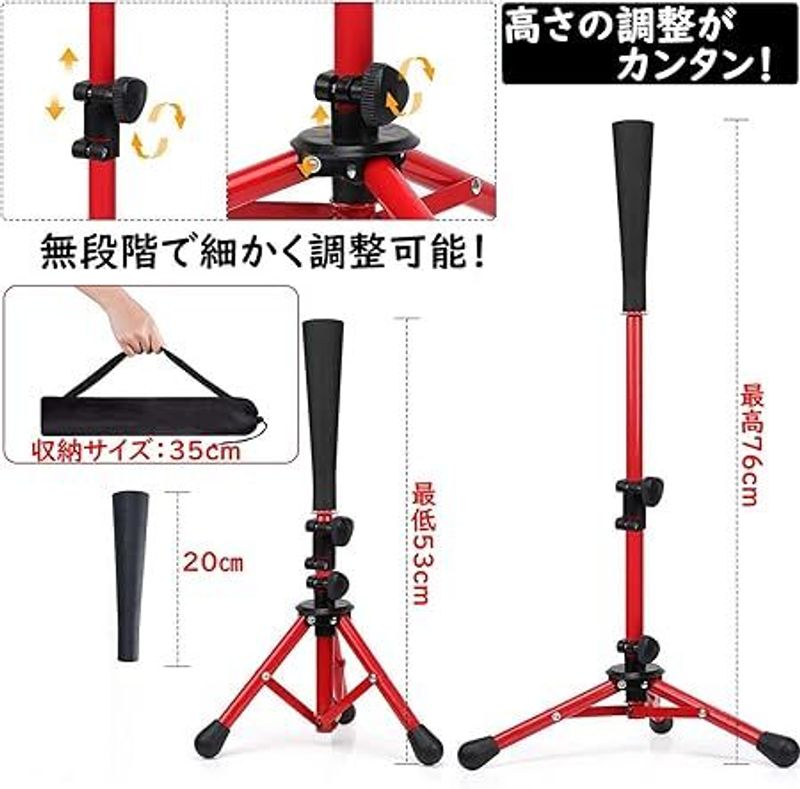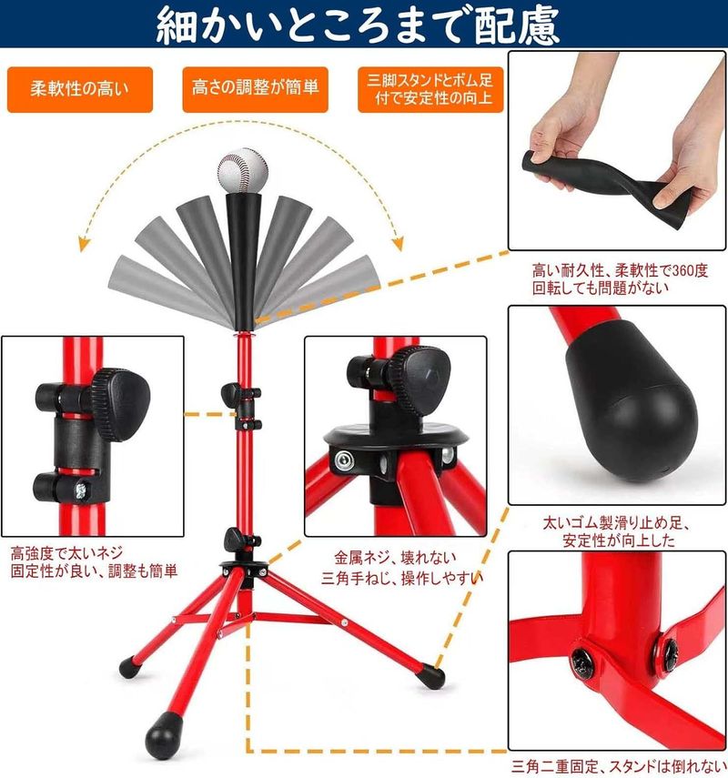 バッティングティー 子供 キッズ用 野 ブラック レッド オレンジ