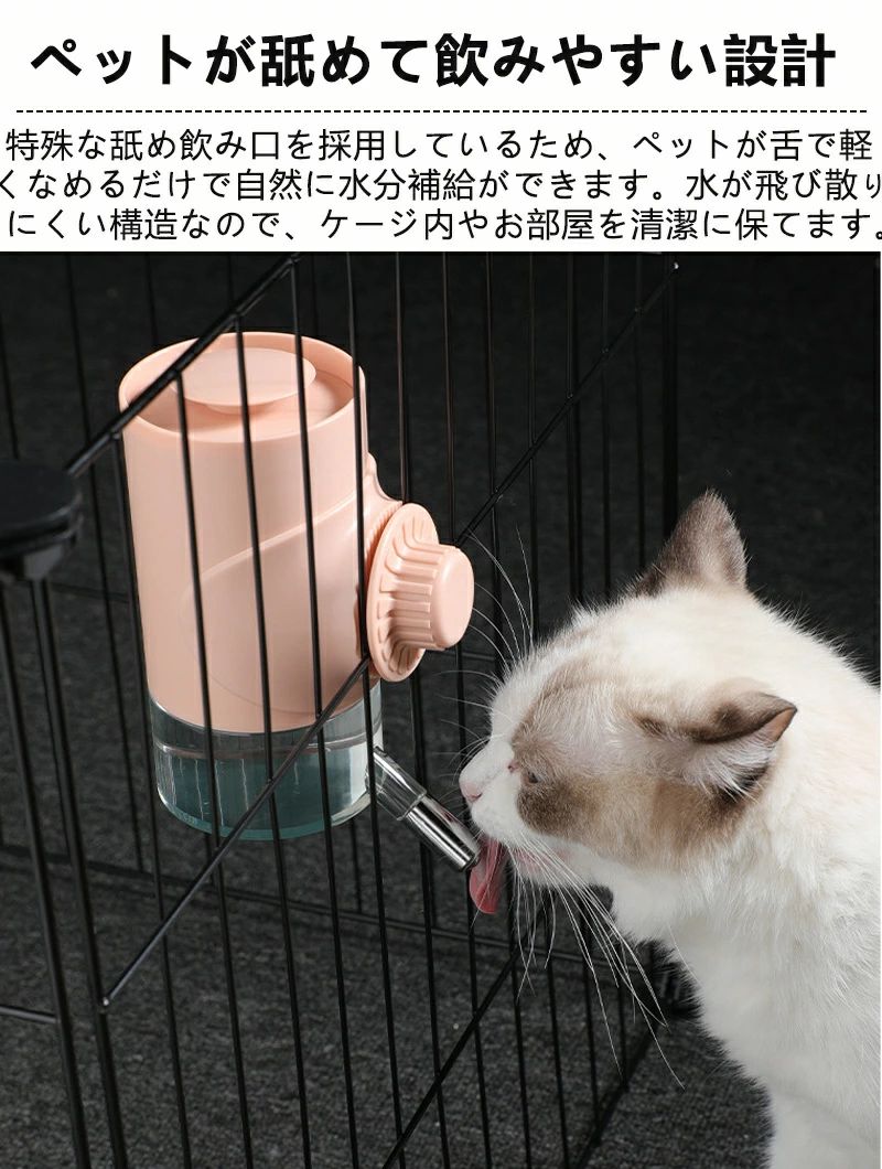 ペット給水器 舐める 自動給水器 水分補給 犬 猫 ケージ 取付型 水飲み 給水器水漏れ防止 軽量 便利 清潔 衛生的 コンパクト 取り付け簡単 飲み口 転倒防止 犬舎用 ペットの水分補給 簡単設置