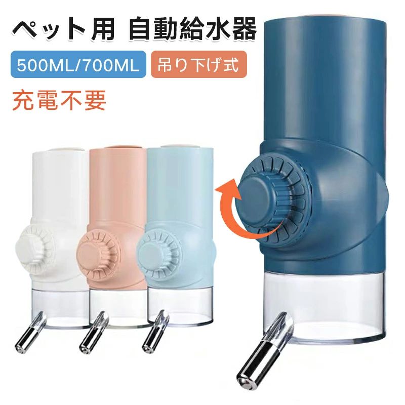 ペット給水器 舐める 自動給水器 水分 ブルー ホワイト ネイビー ピンク 500ML 700ML