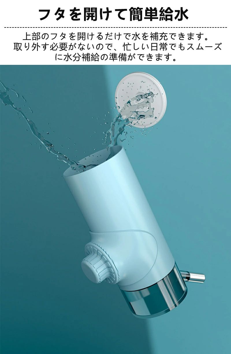 開閉できる構造で水の補充も簡単。ボトル内の水が外気に触れにくいため、いつでも新鮮で衛生的な飲み水をキープ。