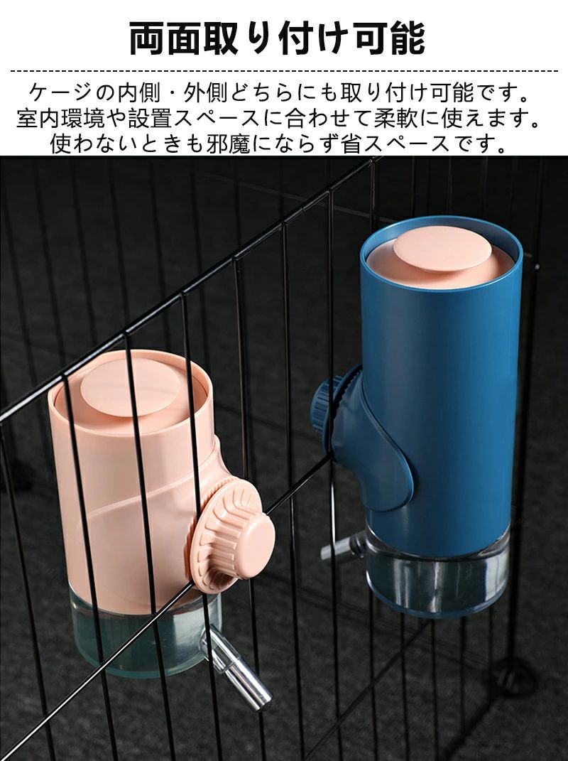 ケージや犬舎に簡単に取り付けられるので、お留守番中の水分補給も安心・清潔・衛生的に。