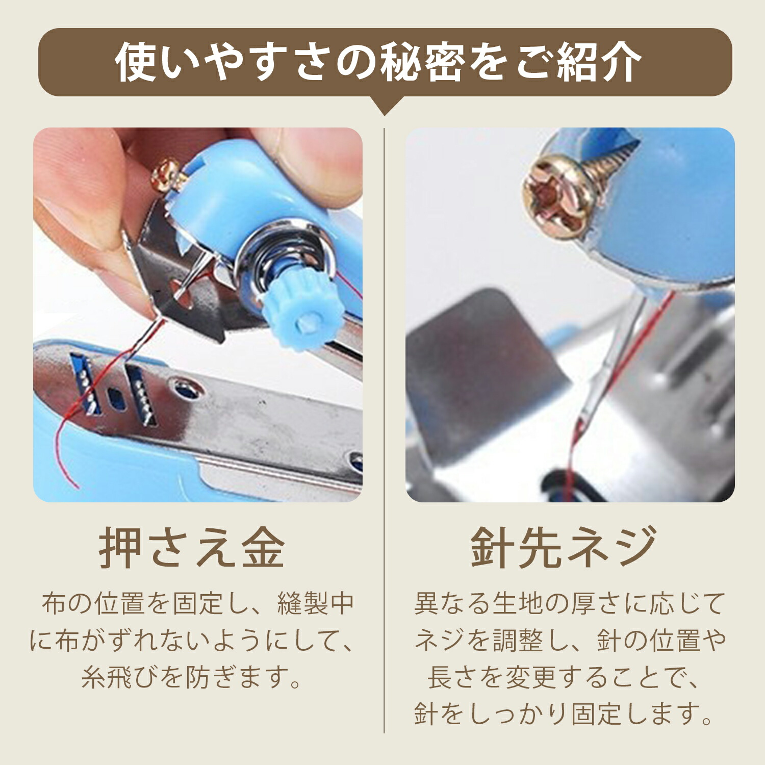 ミニミシン ハンドミシン 手動式 コン ホワイト ボルドー ブルー