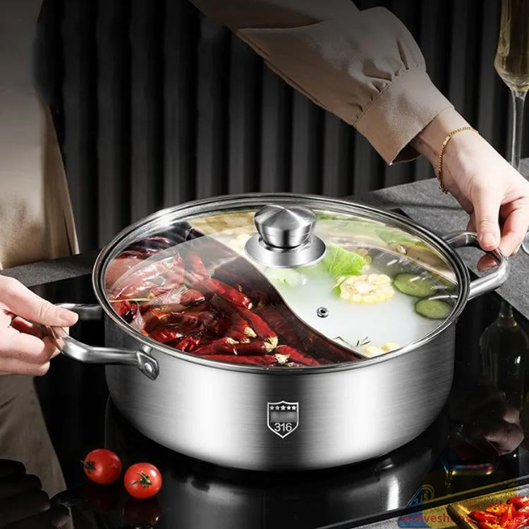 仕切り鍋 二食鍋 IH対応 二色鍋 中 28cm 30cm 32cm