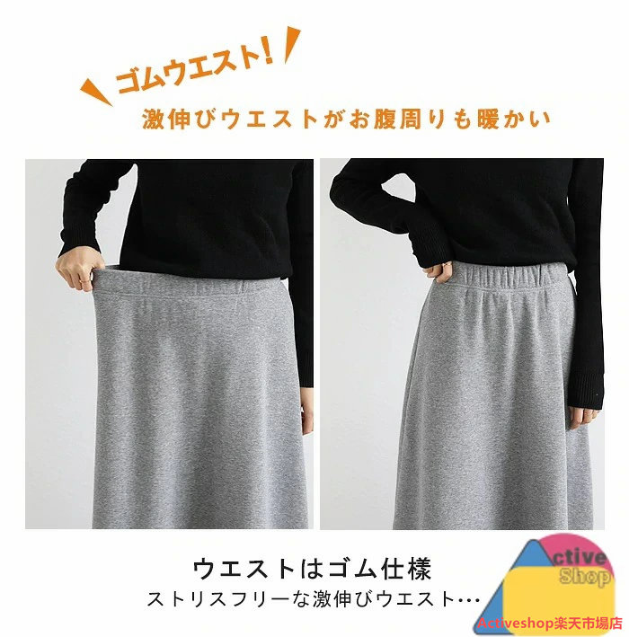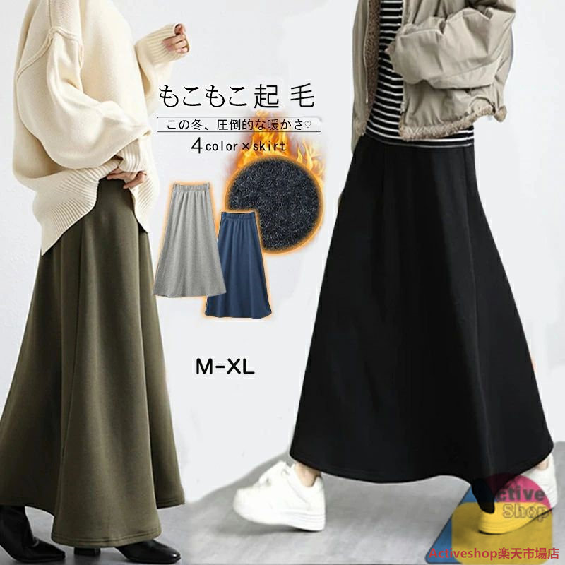 裏起毛 スカート あったか フレアスカ ボトムス スカート 通販 ブラック グレー グリーン ブルー M L XL