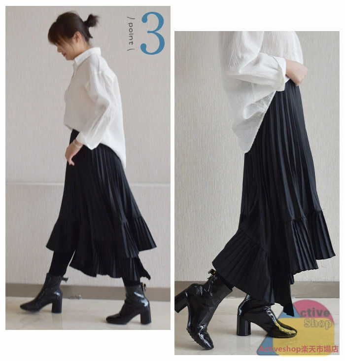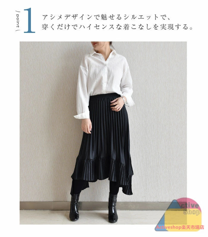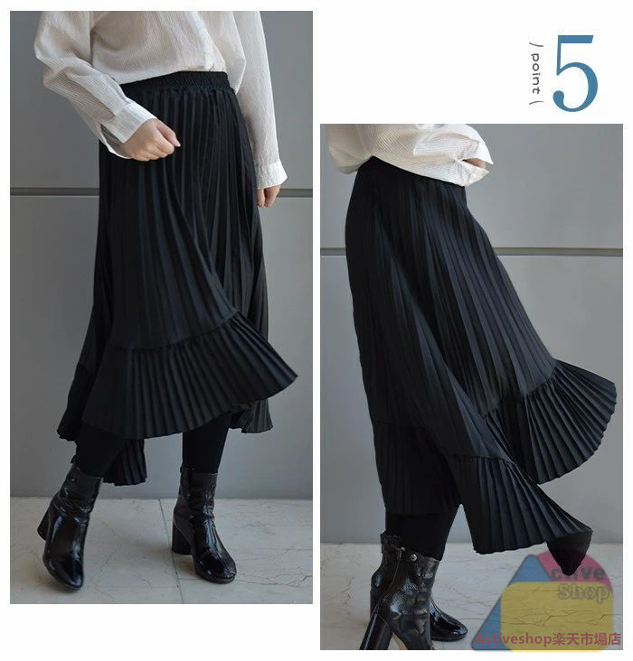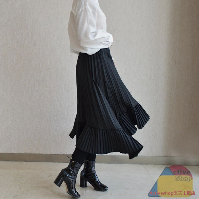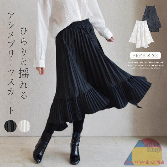 プリーツスカート アシンメトリー レデ レディースファッション 特集 ブラック ホワイト