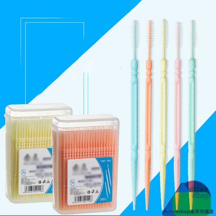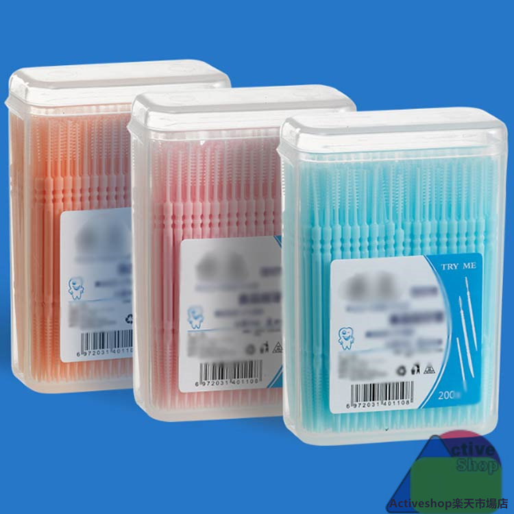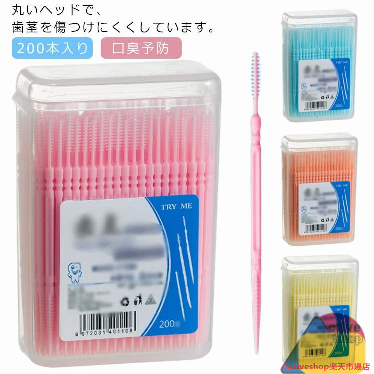 歯間ブラシ 200本入り つまようじ ホワイト ブルー オレンジ グリーン ピンク イエロー