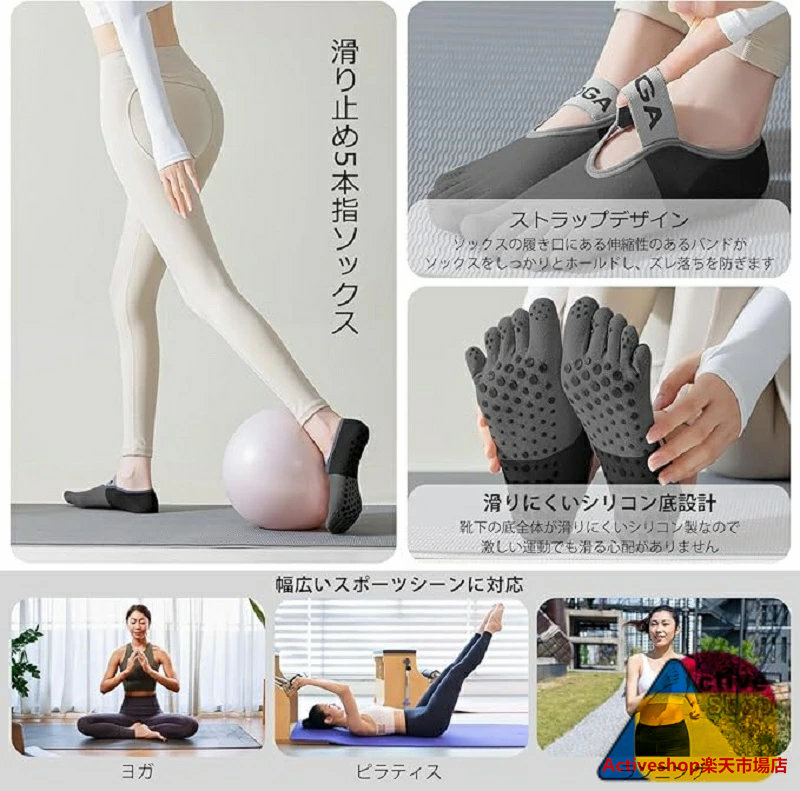 ピラティス 靴下 レディース ヨガソッ ブラック グレー グリーン パープル レッド ブルー