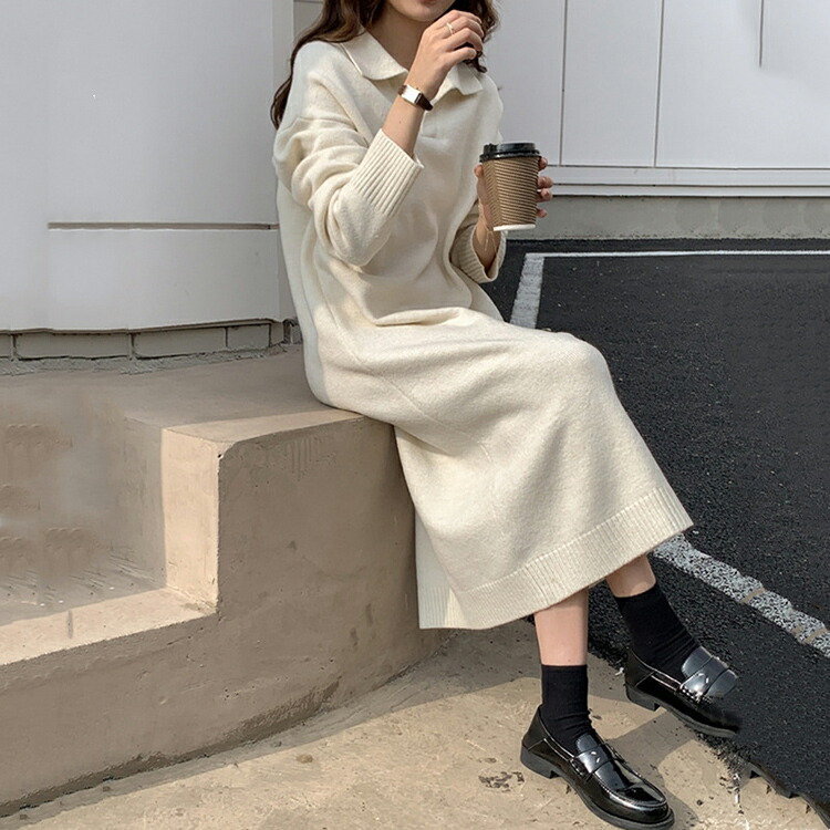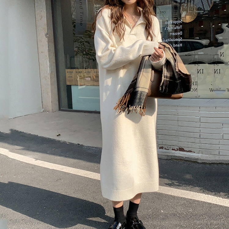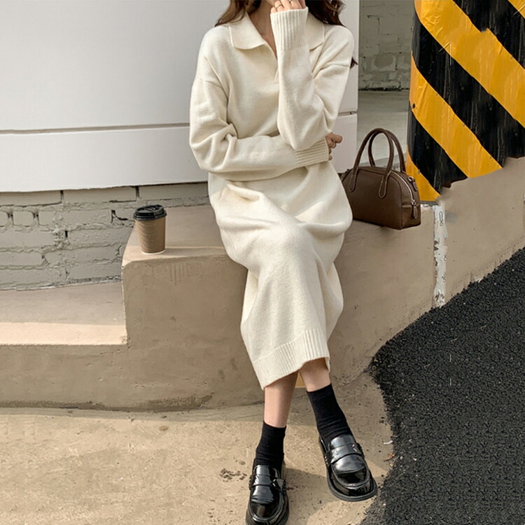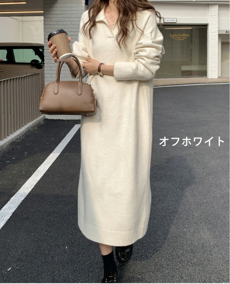 ニットワンピース レディース 40代 レディースファッション 続々登場 オフホワイト ブラック
